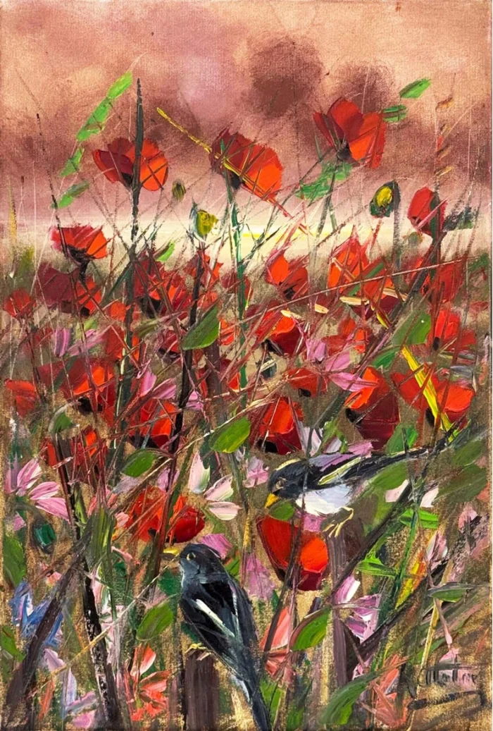 Rüzgar İçinden Gelincikler Yağlı Boya Tablosu