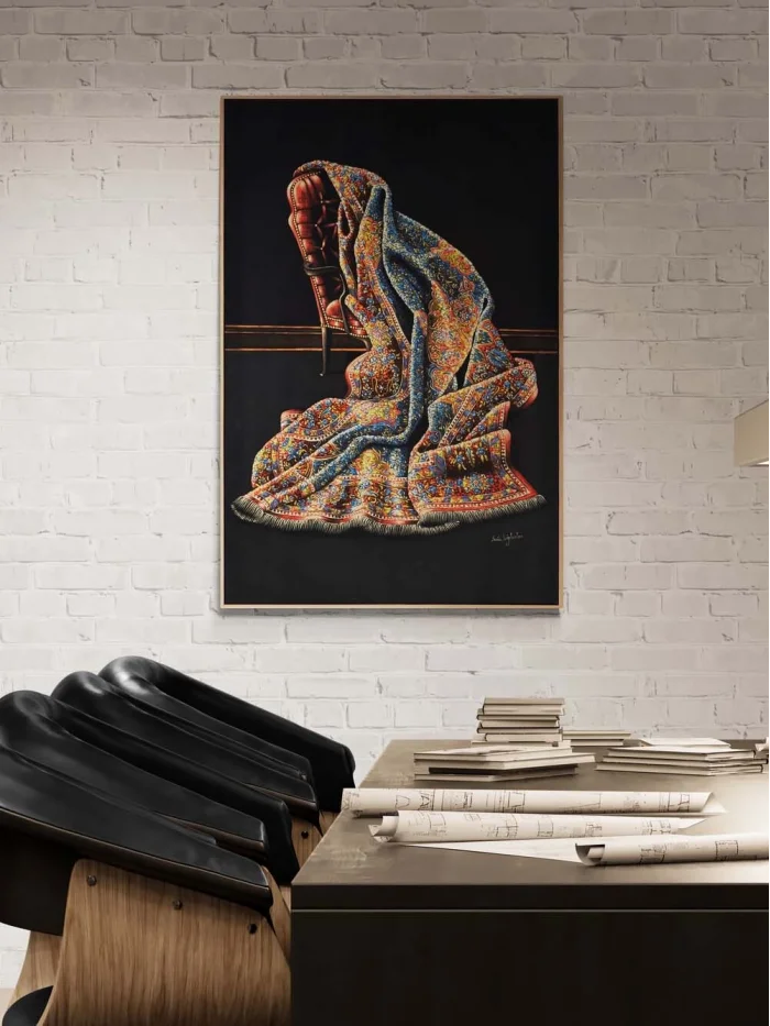 - Özel olarak üretilen 400 gr kalınlığında 1.sınıf sanatsal yağlıboya tuval üzerine çalışılır.