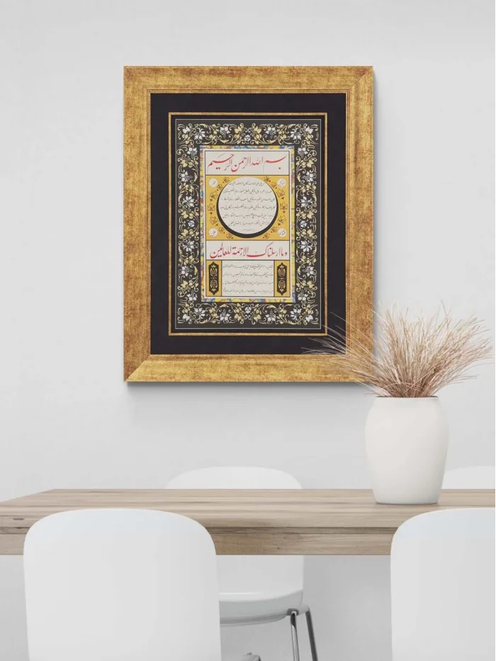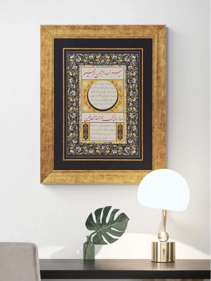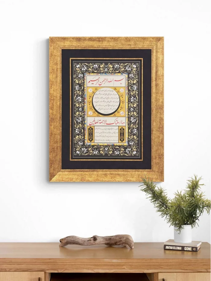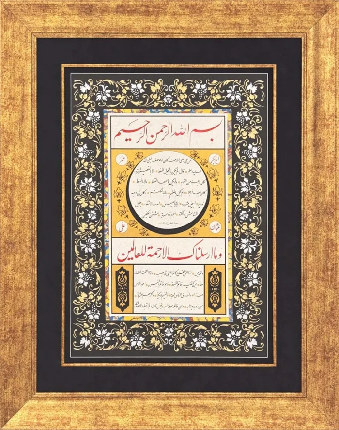 Siyah Tezhipli Hilye-i Şerif Hat Sanatı Tablosu