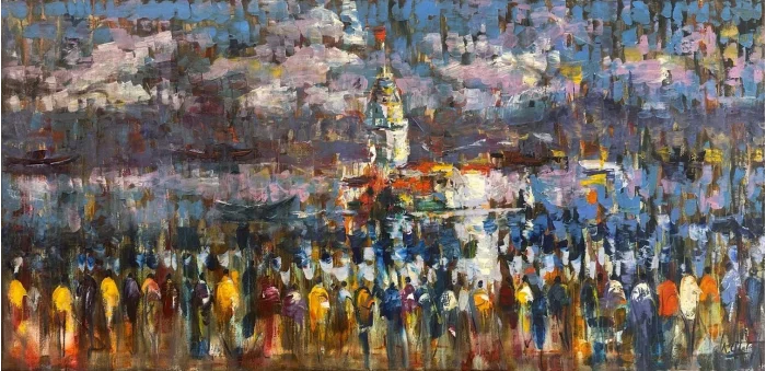 Üsküdar'da Kalabalıklar Yağlı Boya Tablosu