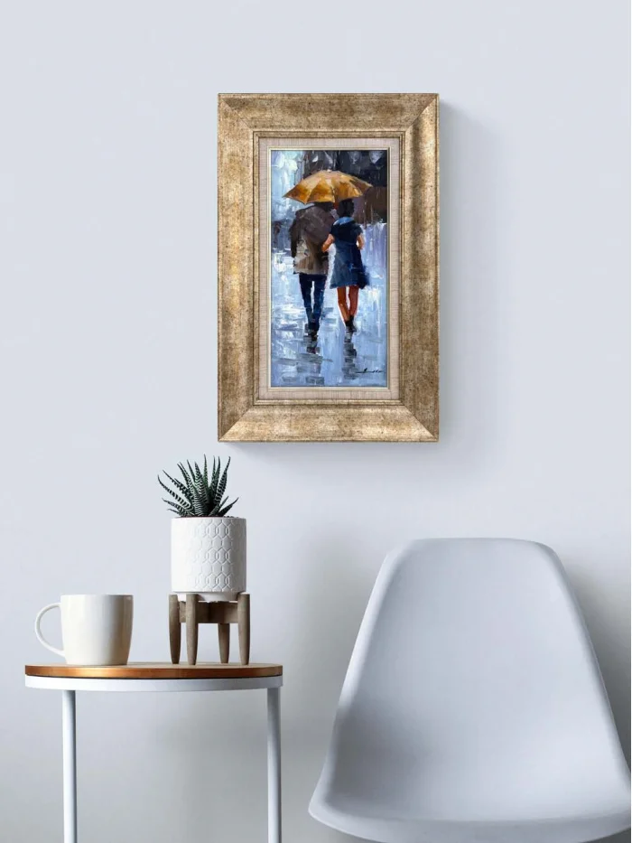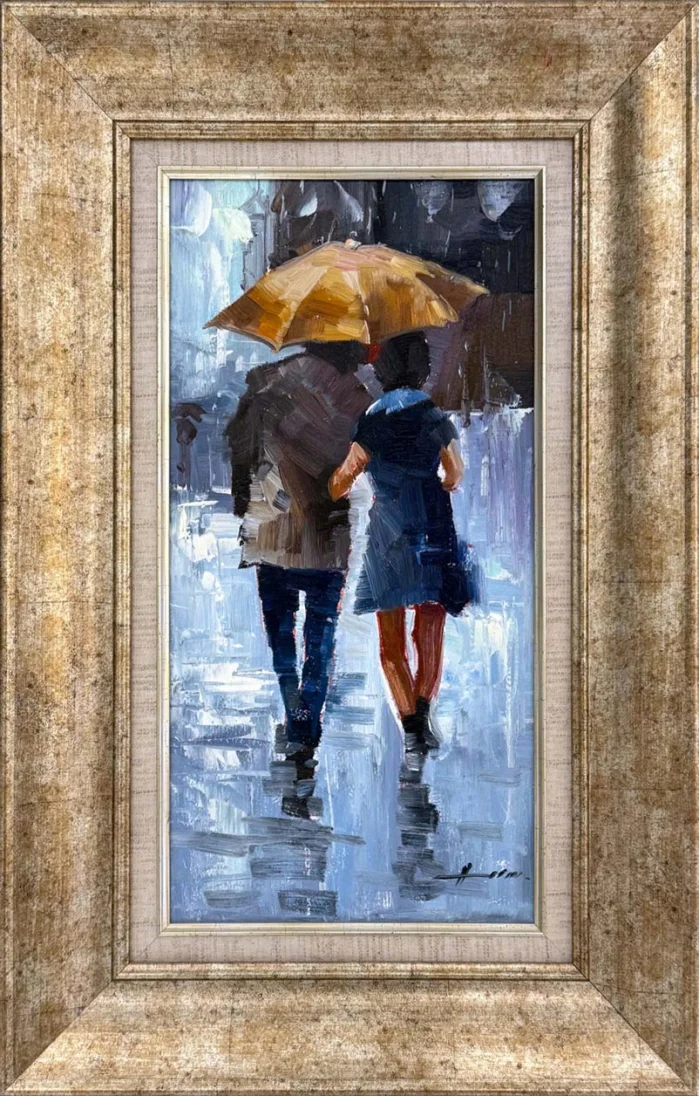 Yağmur Altında Aşıklar Yağlı Boya Tablosu