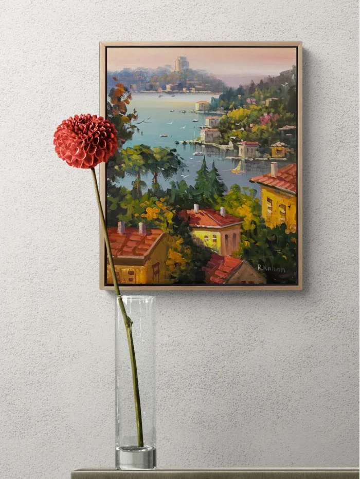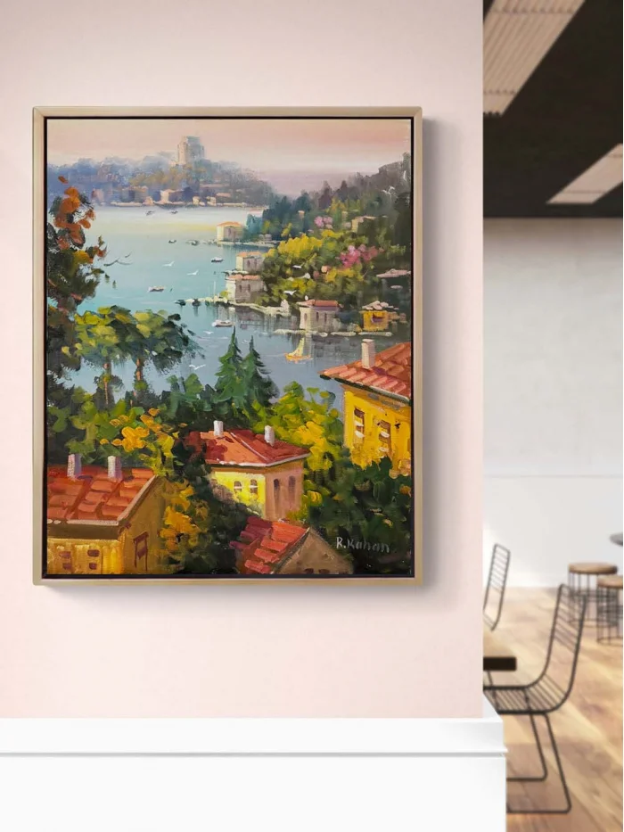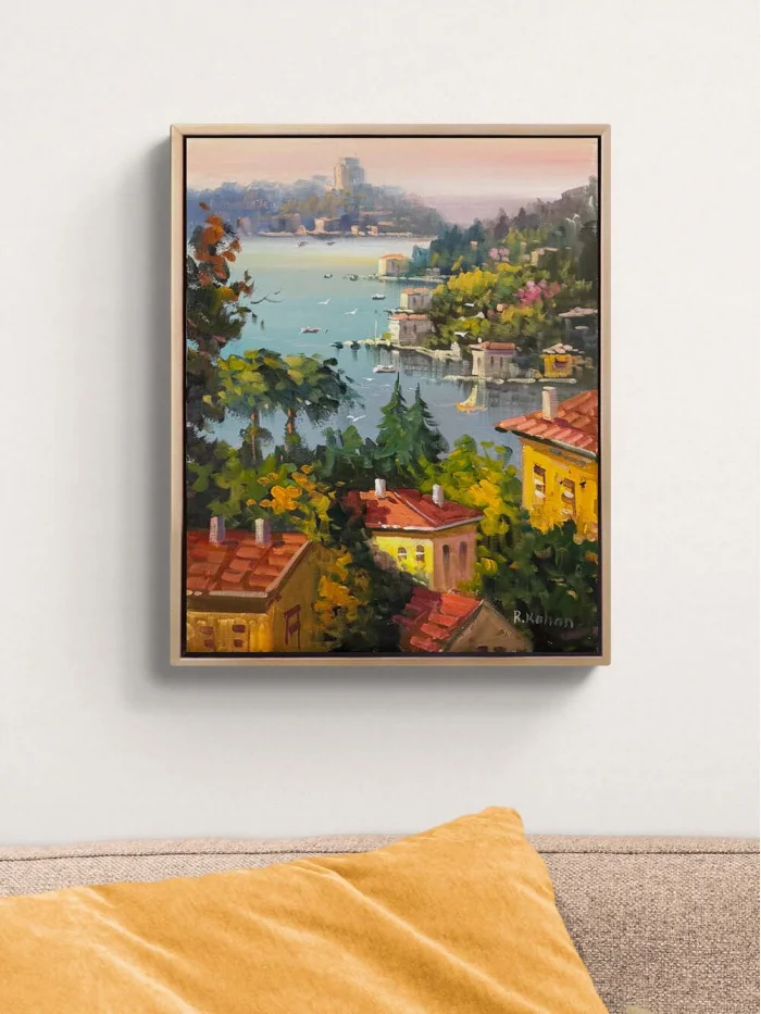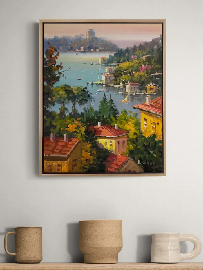 Yamaçtan Manzara Yağlı Boya Tablosu