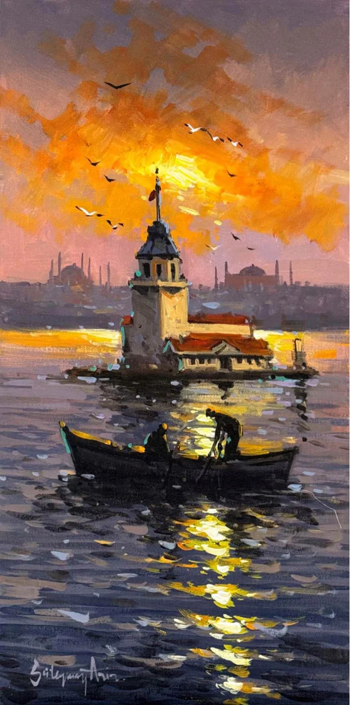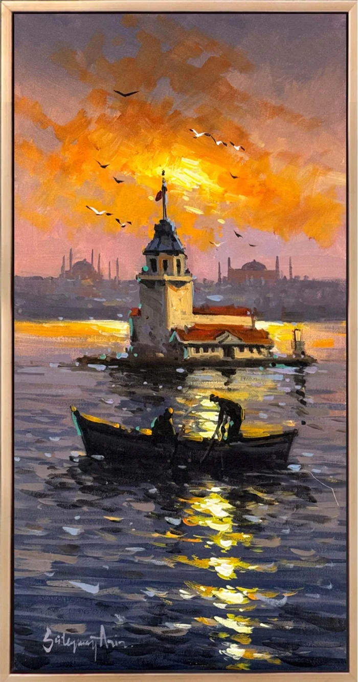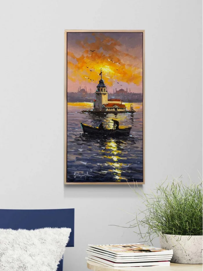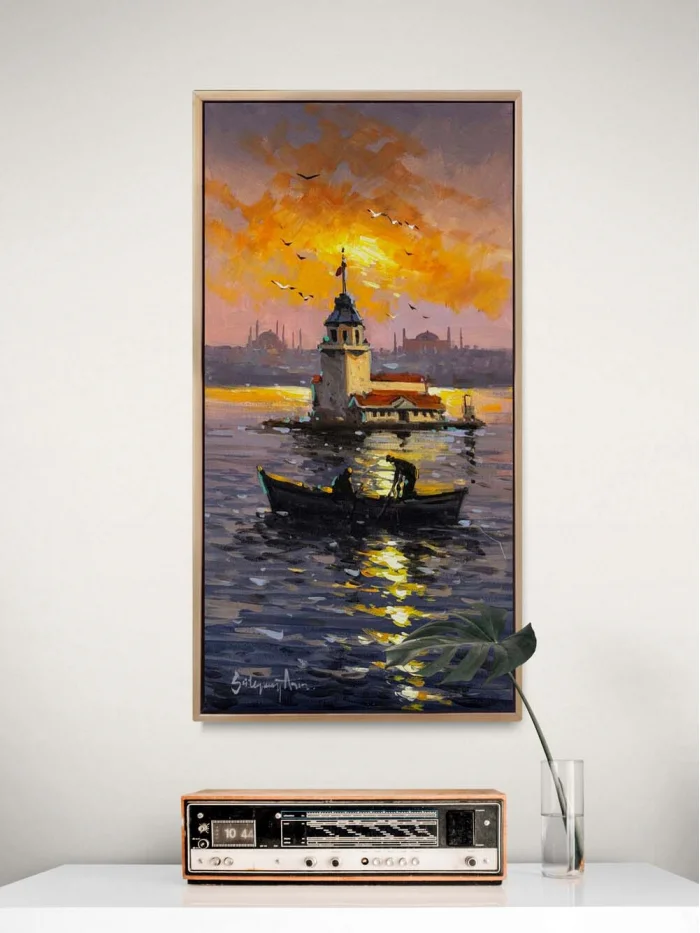 Yaz Akşamı Kız Kulesi Yağlı Boya Tablosu